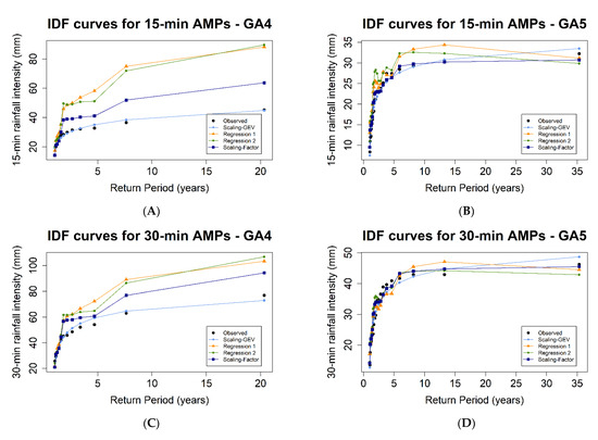 - Bougadis, J.; Adamowski, K. Scaling model of a rainfall intensity-duration-frequency relationship. Hydrol. Processes 2006, 20, 3747–3757. [Google Scholar] [CrossRef]