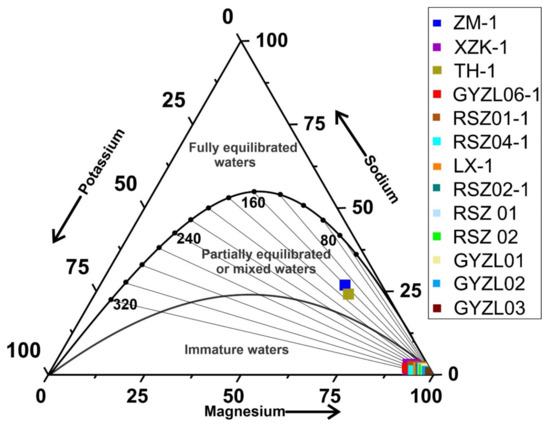 - Na-K-Ca-Mg: 14920/[3lg(Na/K) + 3lg(Ca/Na2) – lg(Mg/Na) + 40.91] – 273.15 [27]. S denotes the concentration of SiO2. All of the concentrations are in mg/L.