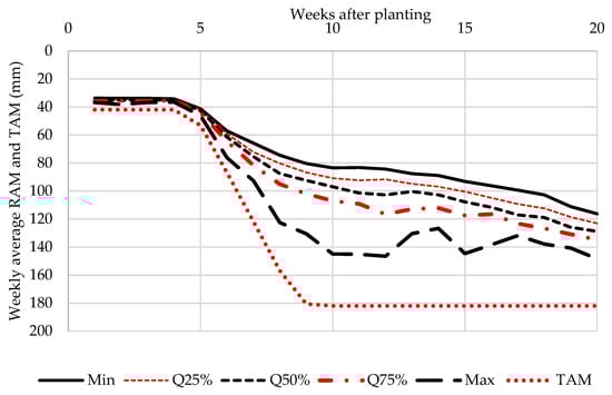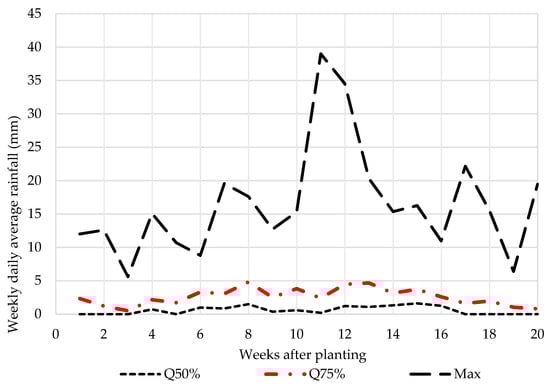 Figure 8 for uniform and non-uniform irrigation applications while considering rainfall or not with a growth stage-specific maximum