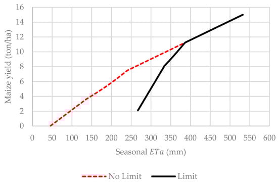 to increase to 386 mm with a corresponding CWP of 29.11 kg/mm. The maize yields corresponding to maximum CWP are, respectively, 7.47 and 11.22 ton/ha when no limit on