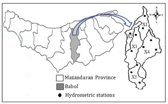 The Babolroud watershed is located between 36°0′2″ and 36°36′35″ north latitude and 52°28′40″ to 52°47′2″ east longitude in Mazandaran Province, Iran (Figure 1). Babolroud River originates from the northern front of Alborz Mountain, and it is bounded by the Talar watershed and Siahroud River in the east and Haraz River in the west. The annual flow discharge of Babolroud River is about 11 m3/s, and the riverbed mainly consists of gravel and coarse particles. The drainage area of the Babolroud River watershed is about 962 km2, and this watershed contains five main sub-basins. The area is mostly cold and semi-wet, with an annual precipitation depth of 782 mm and an average temperature of 14.14 centigrade. The maximum and minimum elevations of the watershed are 3677.6 and −14.8 m, respectively. A large part of the middle and southern regions is mountainous and covered by a dense forest of beech, oak, and broadleaf. In the northern region, the land is mainly used for agricultural purposes.