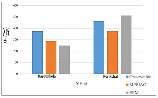 Comparison between the results predicted by both MPSIAC and EPM models to those of field measurement at Darounkola and Kerikchal Stations.