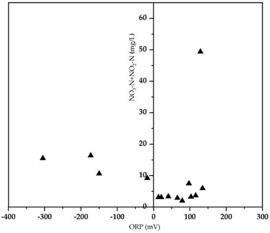 Nitrate–nitrogen and nitrite–nitrogen (NO3-N + NO2-N) concentration versus ORP.