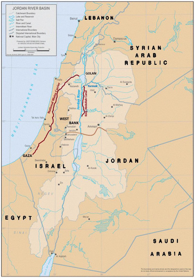 - Wolf, A. Hydropolitics along the Jordan River: The Impact of Scarce Water Resources on the Arab-Israeli Conflict; United Nations University Press: Tokyo, Japan; United Nations University Press: New York, NY, USA, 1995. [Google Scholar]