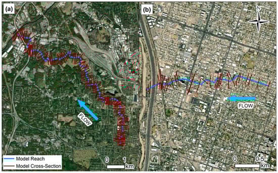 Model study sites: (a) Proctor Creek, Atlanta, GA, USA; (b) Bronx Wash, Tucson, AZ, USA.