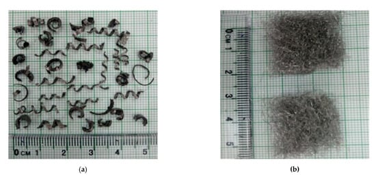 The Fe0 materials used in this study were scrap iron and commercial steel wool with product code FGSK003. The materials were used in this experiment because they are readily available, cheap, and their reactivities based on the past experiments [,]. The scrap iron materials were generated from the lathing machine at Mbeya University of Science and Technology (MUST, Mbeya, Tanzania), while Steel wool (Africa) Limited (Nairobi, Kenya) manufactures the commercial steel wool product. Both materials were not protected from air oxidation. The steel wool materials used had an iron content of 99.25%, while the scrap iron materials had 98.68% (Table 1). The elemental composition of the Fe0 materials was determined using Bruker S1 TITAN 800 XRF spectrometer (Bruker, Billerica, MA, USA). The steel wool material was cut into equal pieces of about 25 mm, while scrap iron ranged between 4 mm and 20 mm (Figure 1).