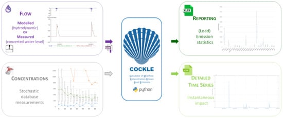 Characterizing the emissions and impact of combined sewer overflows (CSOs) remains one of the key challenges in the field of urban wastewater. Considering the large number of existing CSOs, decision-makers need a pragmatic approach that allows fairly easy, hands-on determination of emissions (particularly loads) without compromising accuracy. This philosophy is incorporated in the Cockle tool presented here, which uses stochastically processed input from a vast amount of pre-registered water quality data (pollutant concentrations) in combination with spill flow time series either generated from hydrodynamic models or converted from monitored overflow water levels. Uncertainty is intrinsically covered by the statistical output range of the reported results. As a fully automated tool, Cockle allows to readily assess emissions within a chosen time frame, facilitating more accurate guidance for further remediation actions and/or mapping of the current state for operational follow-up.