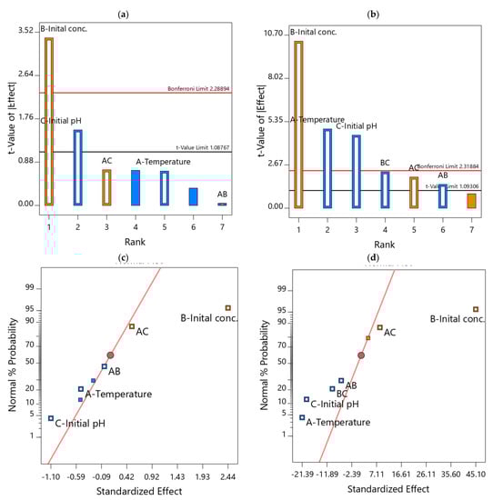 3.2.2. Cr(VI) Adsorption Pareto Charts