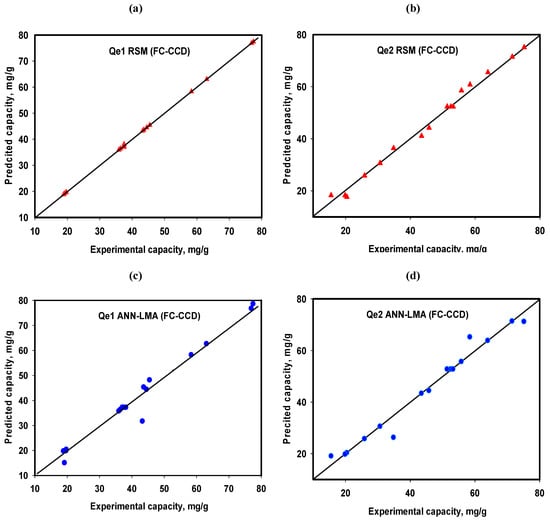 - The ANN-LMA models’ predictions were better compared to the RSM predictions, and the non-linearized forms of the kinetics and equilibrium models provided better parameters compared to the linearized forms.