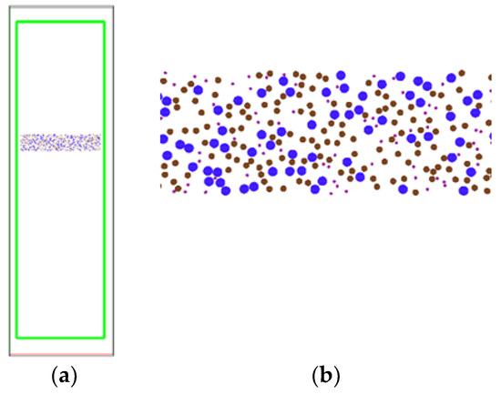 To distinguish between particles with different sizes, different colours were used in Figure 1b. The purple particles represent particles with a diameter of 10 μm, the brown particles represent those with a diameter of 20 μm, and the blue particles represent those with a diameter of 30 μm. All particles were randomly generated within the generation domain, and they did not collide with each other.