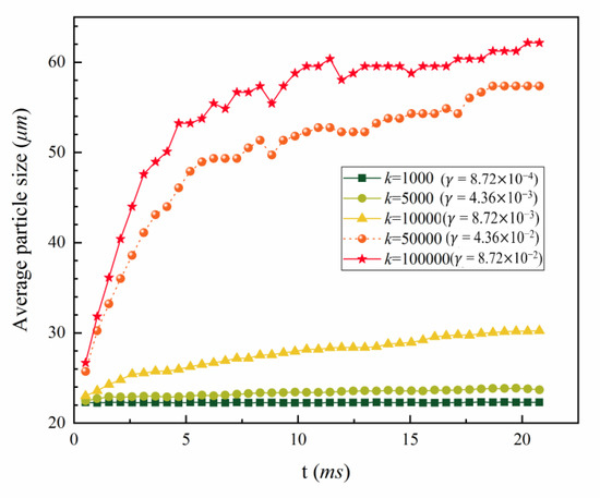 A different k in Equation (8) resulted in a different surface energy. Figure 2 shows the variation of the average particle size with different surface energy for the particles with diameter 20 μm.