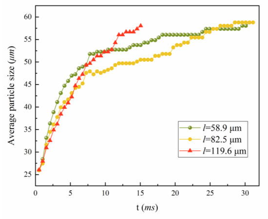 Calculated average particle sizes with different fluid grids, where l is the width of the fluid grid.