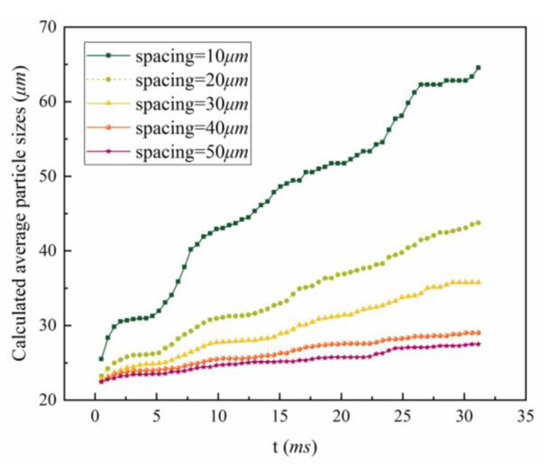Variation of the average particle sizes under different spacing conditions.