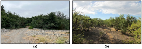 One of the most representative species of the Maule Region—Espino Maulino, or Acacia Caven—which used to prevail in the Mediterranean landscape, especially in the grasslands of the foothills, had been reduced to solitary individuals or small stands of thorns in the study area (Figure 9). This reduction was due to anthropogenic factors such as settlement and the land ownership system and structure, among other secondary causes such as fires, tree felling, charcoal production, crops, and livestock [55].