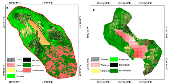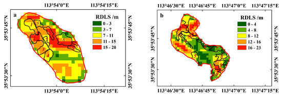 Topographic relief of terrace: (a) XQ watershed and (b) LY watershed.