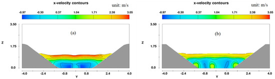 Most of the freshwater fishes living in the river in which the project is located are migratory fish stocks, including Squaliobarbus curriculus, Elopichthys bambusa, Ctenopharyngodon idella, Aristichthys nobilis, Megalobrama terminalis, and Cirrhinus molitorella, among others. According to related research, the burst swimming speed of these fishes is about 1.3 to 2.7 m/s, and the ideal velocity (preferred velocity) for migration is about 0.6 to 1.5 m/s [49]. Therefore, the maximum flow velocity in the fishway should be limited to the burst swimming speed of the migrating fish.