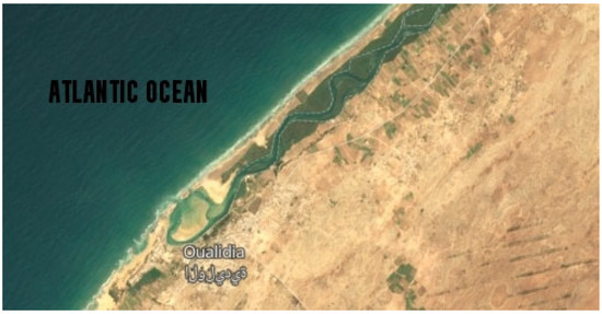 Oualidia lagoon, North West of Morocco (N 32.74675, W 9.036667), (Image GeoEye from Google Earth, 2022).