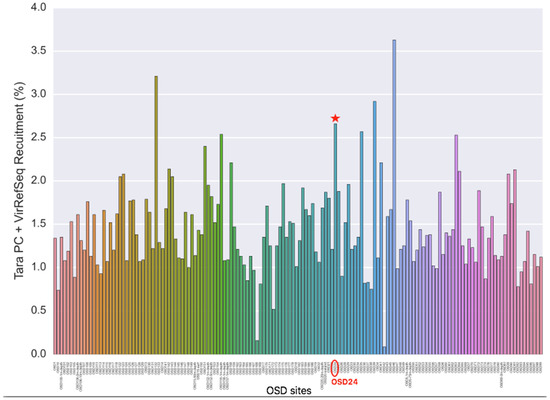Proportion of reads mapping to viral contigs in OSD metagenomes. Legend: OSD24: Marchica lagoon.
