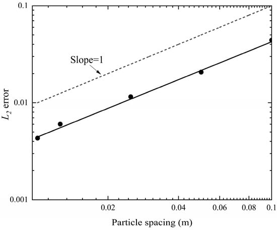 As shown in Figure 12, the error decreased linearly with the particle spacing. The convergence rate of 1.0 indicates that the accuracy of the numerical solution improved at an expected rate with increasing spatial discretization.