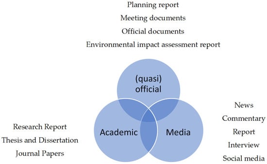 The inclusion of multiple viewpoints in this study could have helped to prevent the researchers’ personal values from affecting the research results because a wide variety of data, different methods, and perspectives of researchers in different fields can be neutralized [,]. In response to two research approaches, this study firstly collected official and quasi-official public information and secondly analyzed media materials and interviewed reporters and interviewees on the subject in the process. Third, Triangulation for the study to cross-check three different types of data (Figure 1). The reliability of the research originated from the use of various methods and different data sources. The data were verified at all levels of time (long-term), space (specific), and people (key roles). The scientific philosophical framework of this research comprised a multi-method approach of considering “retrospections data components back and forth”, “triangulation to seek the most applicable interpretation”, “descriptive laws from all levels”, and “breakthrough awareness of research limitations” [], with the aim of generating more trustworthy research interpretations [].
