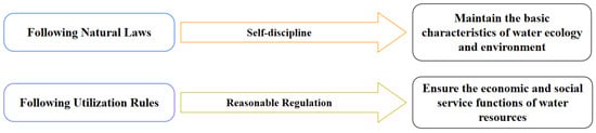 The Virtuous Cycle of water resources requires that human activities should be self-restrained to follow the natural laws and maintain the basic characteristics of water ecology and environment. Furthermore, at the same time, through reasonable regulation and utilization, social and economic development can be satisfied. A two-way promotion and restraint mechanism can be built between nature and society to improve the resilience of floods and droughts, and increase the quality of the environment and ecology. Ultimately, the harmony between man and water will be realized (see Figure 3).