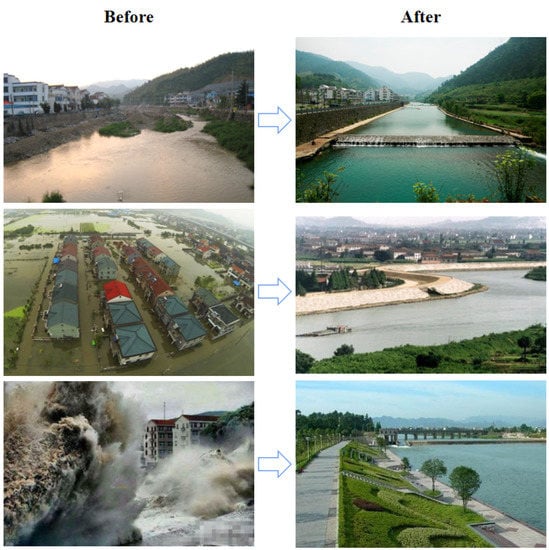 Scholars and managers have conducted extensive research on basin-wide water resources management [,,]. The United States has adopted a whole-basin management model, such as the Tennessee Valley Authority (TVA), and believes that management at the whole-basin scale management and interdisciplinary science in defining environmental flows are the key to the restoration of the entire regional water ecosystem []. It pays special attention to upper river basin governance, taking it as the premise and foundation for the protection and restoration of water ecology []. At the same time, new management techniques and methods are also proposed, including water rights analysis system, sewage resource utilization system, urban rainwater management system, and water resource decision-making system. For the sustainability of the ecosystem, the Canadian Standards Association (CSA) establishes the Sustainable Forest Management System (SFM) standards []. The core is the connection networks of the forest, water, and ecological environment with the socio-economic system []. At the same time, the CSA proposes a watershed management model that emphasizes the local decentralization of natural resources within the watershed, and highlights cooperation and the “who invests, who benefits” approach. Japan adopts natural adaptive river management to restore rivers and wetlands. Due to the high population density, high level of urbanization, and complex terrain, ecological restoration has become a difficult task []. In response to changing water security needs, the International Association of Hydrological Sciences (LAHS) put forward the new Scientific Plan for the Decade 2013–2022, which takes the impact of human activities as a key research direction []. Studying the synergistic mechanism of human activities and the water resources cycle, and realizing the comprehensive management of water resources, water environment, and water ecology will become major research in the sustainable development of water resources.