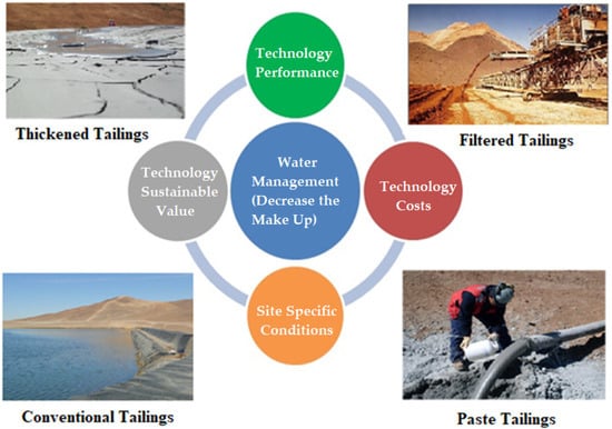 Figure 5 shows different dewatering tailings technologies that focus on water recovery and efficient water management: