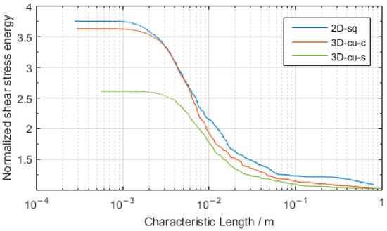 The power function F(f) added from low frequency to high frequency represents the accumulation of the shear stress energy from large scale vortices to small-scale vortices, and its maximum is the total energy of the shear stress temporal signal. In Figure 13, the frequency f is replaced with characteristic length scale , and the curves represent the accumulation of the shear stress signal energy from the largest scale to the smallest scale. The integral increases with the decrease in length scale, and it reaches the maximum at around 1 mm, corresponding to a frequency of around 30 Hz where the power spectral density is about two orders of magnitude smaller than its maximum.