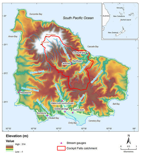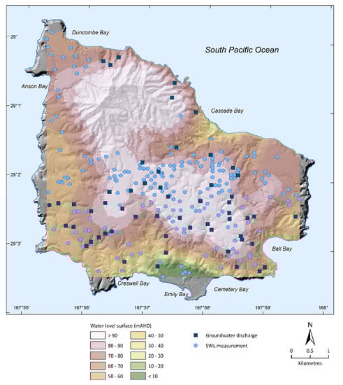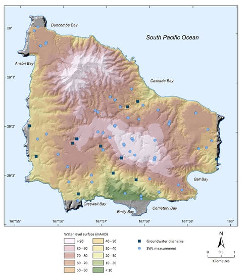 - Abell, R.S.; Falkland, A.C. The Hydrogeology of Norfolk Island, South Pacific Ocean; Technical Report; Department of Primary Industries and Energy. Bureau of Mineral Resources, Geology and Geophysics: Canberra, Australia, 1991.
