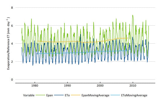 - Guerschman, J.P.; Van Dijk, A.I.J.M.; Mattersdorf, G.; Beringer, J.; Hutley, L.B.; Leuning, R.; Pipunic, R.C.; Sherman, B. Scaling of potential evapotranspiration with MODIS data reproduces flux observations and catchment water balance observations across Australia. J. Hydrol. 2009, 369, 102–119. [Google Scholar]