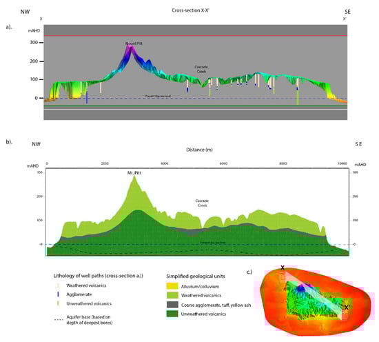 The three-dimensional geological model was then used to assign bores to different aquifers and estimate changes in saturated and unsaturated aquifer volumes based on an historical potentiometric surface from 1974 to 1975 [4] and the modern (2019) potentiometric surface, as well as the change in saturated and unsaturated cliff areas.