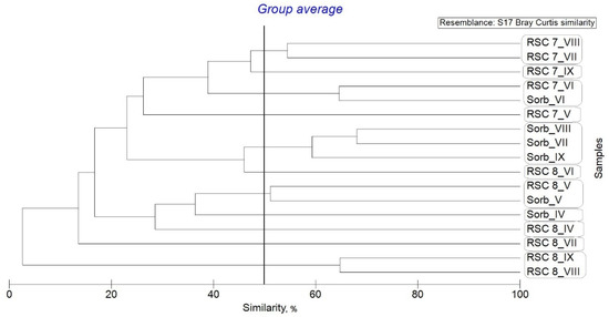 During the study period, the species composition of planktonic invertebrates was variable, especially in RSC 7 and RSC 8 (Figure 6). In May and June, the composition of planktonic invertebrates in RSC 8 and RSC 7 was most similar to that in Sorbulak. In Sorbulak, species composition was most peculiar in April; from July to September, it was relatively stable, with a similarity of over 60%.