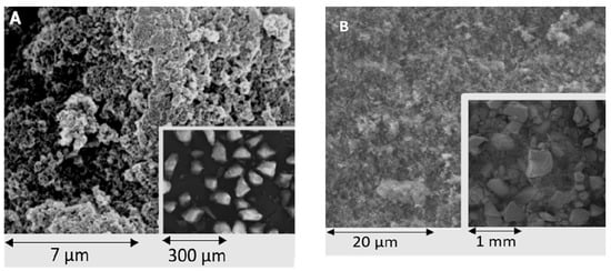Scanning electron microscopy pictures of Bulk synthesized MIP by Gallegos-Gallegos [] (A) and in this study (B).