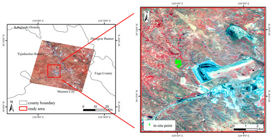 The Shangwan mine area in China’s Ordos Plateau is chosen as the study area (Figure 1). It is located in a semiarid transition region from arid grassland to desert grassland in central Asia, which is characterized by aridity and little rainfall. The average annual precipitation in the region is about 400 mm, while the average annual evaporation is about 7 times as much as precipitation. The average annual temperature is 6.2 °C. The study area has a water-eroded gully landform of the Loess Plateau, with an elevation ranging from 1097 m to 1322 m. It is an ecologically vulnerable area due to the poor climatic environment, and soil erosion is the predominant ecological problem. Coal mining activities in the study area began in the 2000s and contain both open-pit mines and underground mines. The exploitation of coal resources affects the surface/underground ecological environment and leads to a series of environmental problems [64,65,66].