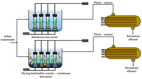 - Yang, X.; López-Grimau, V.; Vilaseca, M.; Crespi, M.; Ribera-Pi, J.; Calderer, M.; Martínez-Lladó, X. Reuse of textile wastewater treated by moving bed biofilm reactor coupled with membrane bioreactor. Color. Technol. 2021, 137, 484–492. [Google Scholar] [CrossRef]