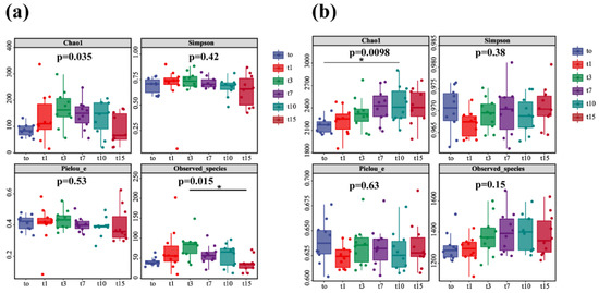 Diversity analysis of nitrifying bacteria (a) and denitrifying bacteria (b) (the “*” expression p < 0.05).