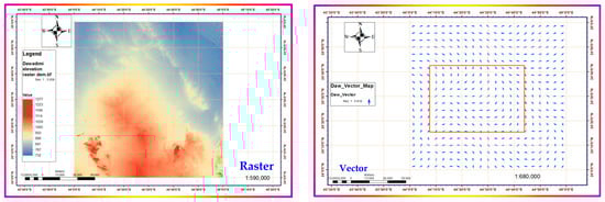 Ad-Dawadmi Governorate is located in the northwest of the Riyadh province, on top of Najd hill, the central area of KSA. It is about 330 km west of the center of Riyadh (latitude 24°39.7′ N and longitude 44°23′ E) [27]. It occupies approximately 27,500 km², and it ranks 5th among the governorates of the region, having a population of 217,305, according to the 2010 population survey statistics [28]. Most of its lands are located within the scope of the so-called Arabian Shield. The highest rocky elevation in Ad-Dawadmi Governorate is 1307 m in Jabal Al-Nir in the far west, and its lowest plain height is 660 m in the far northeast. The province’s surface is generally extroverted, having an average elevation of about 940 m above mean sea level (AMSL). The detailed morphological surface elevation distribution extracted from the DEM raster map is illustrated in Figure 1. As shown, the surface generally slopes towards the east and northeast. Ad-Dawadmi is famous for growing various crops and witnessing remarkable agricultural development in the past thirty years, and it is still fortunate to maintain its production levels [29]. In addition, livestock farming (mainly camels, goats, and sheep), poultry farms, and aquaculture are widely spread all over the governorate.