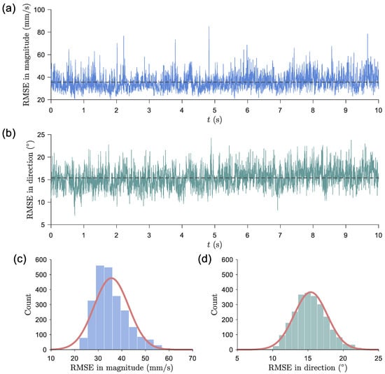 Summary of expected value and RMSEs in magnitude and direction from the validation result with synthetic images. Note that time-averaged results are used in error estimation.