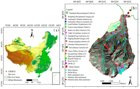 - Han, C.; Chen, R.; Liu, Z.; Yang, Y.; Liu, J.; Song, Y.; Wang, L.; Liu, G.; Guo, S.; Wang, X. Cryospheric Hydrometeorology Observation in the Hulu Catchment (CHOICE), Qilian Mountains, China. Vadose Zone J. 2018, 17, 180058. [Google Scholar] [CrossRef]