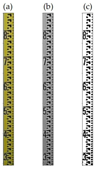- Kim, J.; Han, Y.; Hahn, H. Image-based Water Level Measurement Method under Stained Ruler. J. Meas. Sci. Instrum. 2010, 1, 28–31. [Google Scholar] [CrossRef]