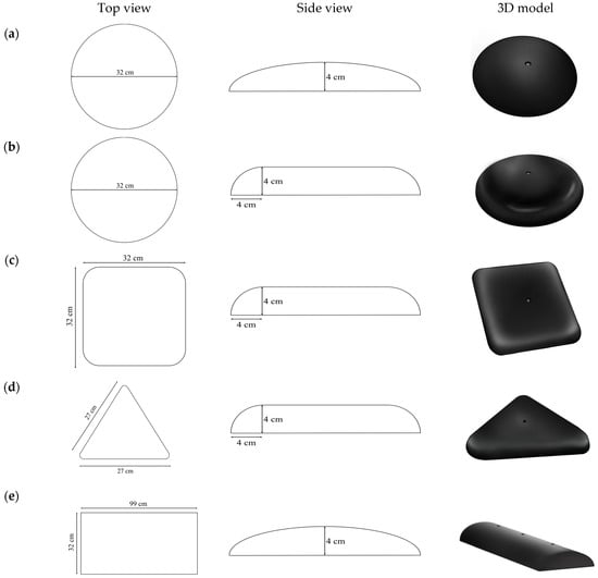 Water depth measurements: (a) saucer plate; (b) pie plate; (c) square plate; (d) triangle plate; (e) bump.