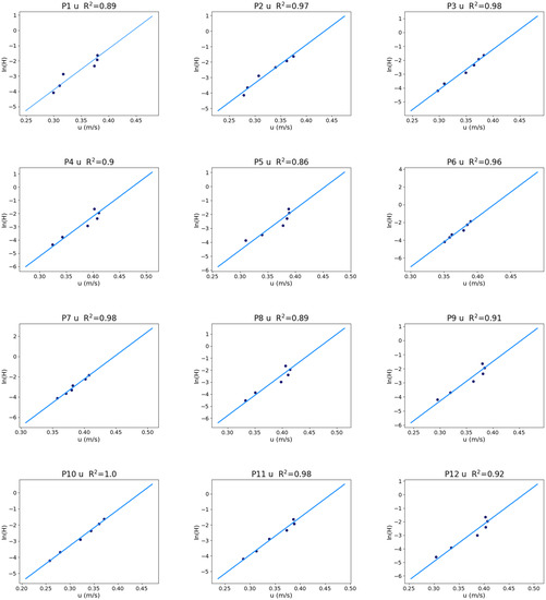 Under smooth wall conditions (, ) []. Equation (8) can be simplified to a linear function in logarithmic form: