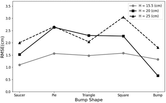 Two distinct sets of continuous bump base plates were designed for numerical analysis to evaluate the feasibility of the composite bed structures. The spacing of these two groups of bumps is one time and two times the width of the bumps. As a result (Figure 20), this method can accurately delineate the bedform regardless of the continuous bump spacing combination. Furthermore, the average RMSE can be controlled below 0.9 cm. It shows that the method in this study has the potential to invert the complex bedform, and possibilities for field measurement.
