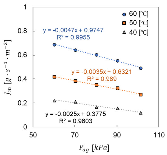 In the MD, the vapor flux (JMD) through the hydrophobic membrane pores could be explained by Equation (1) [14], and the vapor pressure difference across the membrane (pfwpp) is regarded as a driving force for the transports of the water vapor.