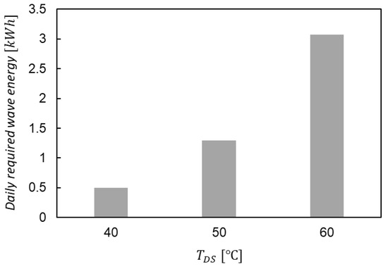 Figure 12. Daily required wave energy for the WavoWater operation according to the DS temperature.