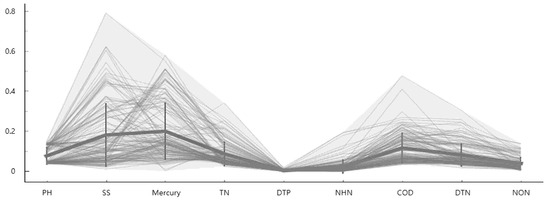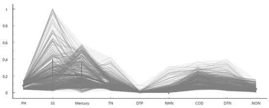 The criteria for selecting the learning data in this study were the literature search, previous studies, and the living environment criteria items of rivers and lakes. This was based on Article 12 (2) of the Framework Act on Environmental Policy (setting of environmental standards) and the environmental standards of the enforcement decree of the same law. However, the total organic carbon content (TOC) was excluded from the study because there were many missing values and there were too many unmeasured areas. Biochemical oxygen demand (BOD) was excluded because it was measured from the amount of DO.