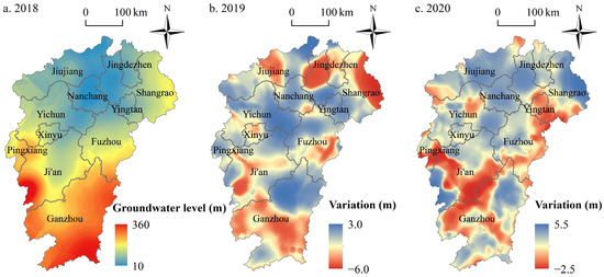 3.1. Spatiotemporal Dynamic Characteristics of Groundwater Level