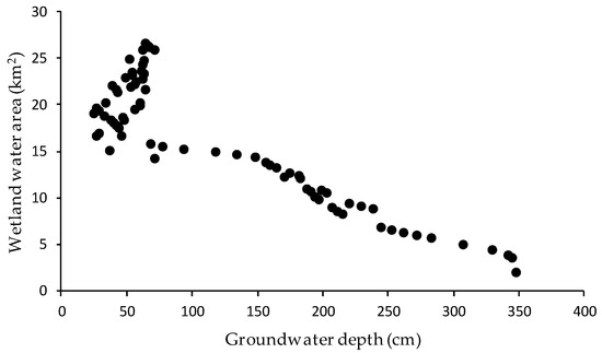 3.1.1. Relationship between Wetland Water Area and Groundwater Depth