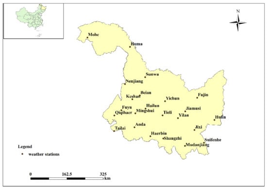 Distribution of meteorological stations in Heilongjiang Province, China.
