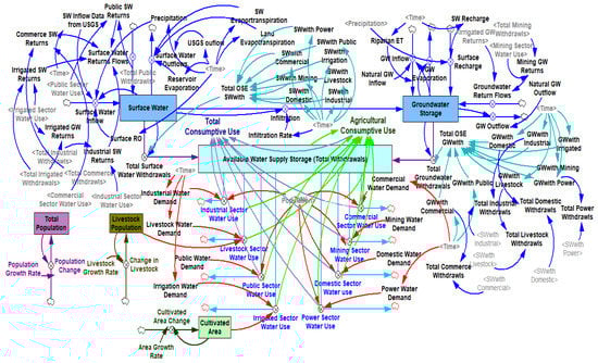 - Winz, I.; Brierley, G.; Trowsdale, S. The use of system dynamics simulation in water resources management. Water Resour. Manag. 2009, 23, 1301–1323. [Google Scholar] [CrossRef]
